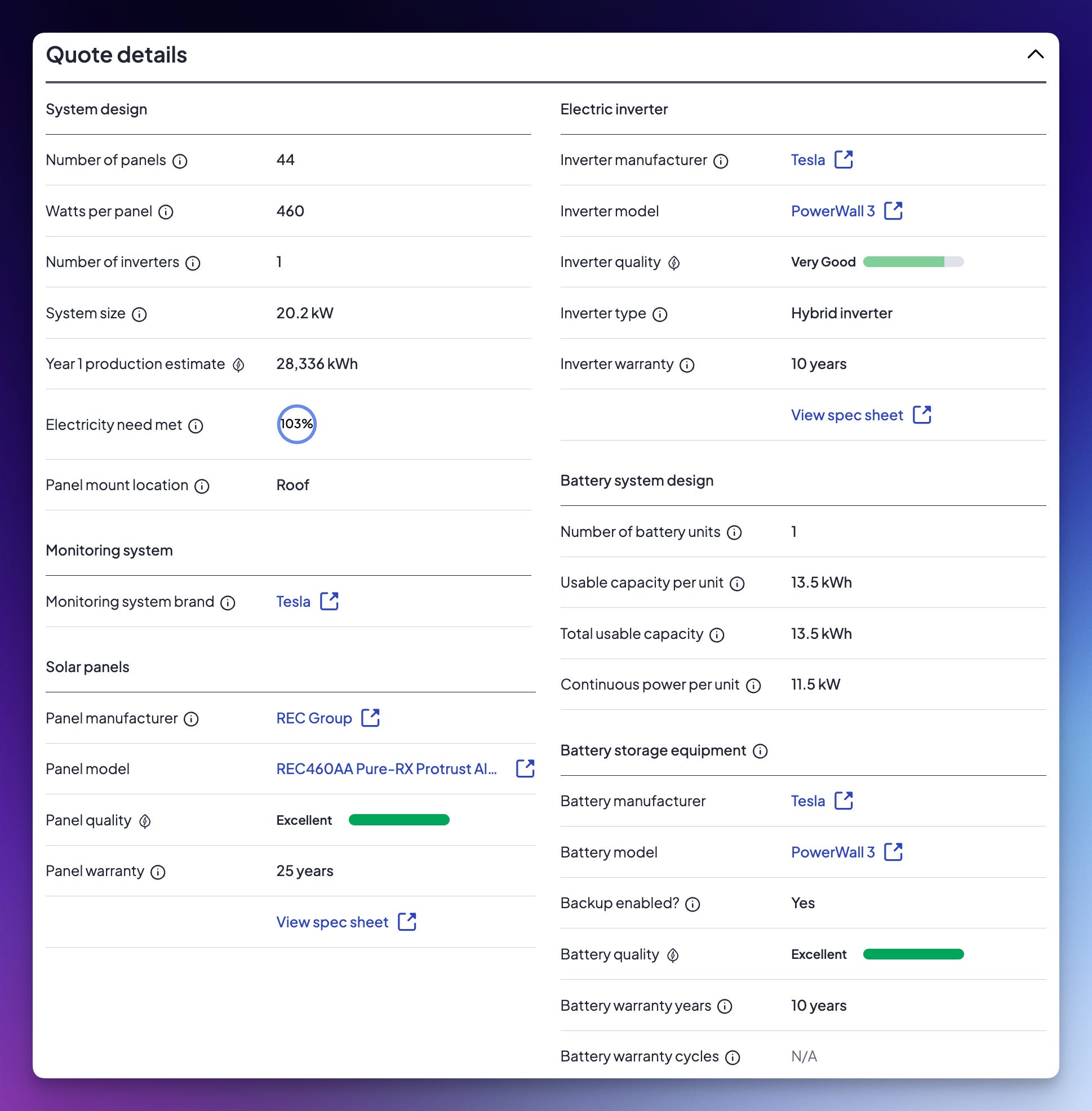 Deeper Understanding: Quickly comprehend complex technical and financial information in solar proposals